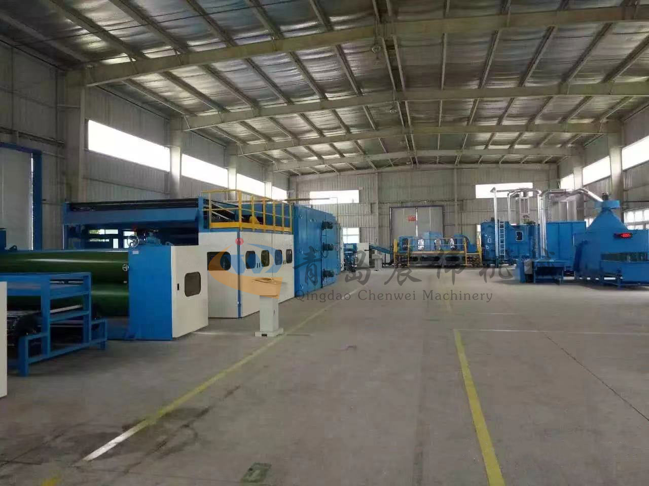 5. CWPW-鋪網(wǎng)機(jī):用于將梳理纖網(wǎng)通過(guò)移動(dòng)小車交叉折疊為所需幅寬和定量的多層纖網(wǎng),以供后道工序使用。鋪網(wǎng)輥采用特殊結(jié)構(gòu),加裝壓網(wǎng)輥和導(dǎo)流板,不飄網(wǎng)不起皺,五只大功率電機(jī)精確控制各部件的運(yùn)動(dòng),電動(dòng)輸出簾高度調(diào)節(jié)裝置