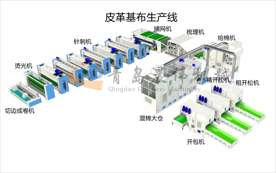 具有皮革基布生產(chǎn)線內(nèi)部結(jié)構(gòu)無規(guī)則,一定的表觀密度,纖維分布均勻,厚度一致,表面平整,耐高溫,拉伸力和剝離力強(qiáng)等特性。