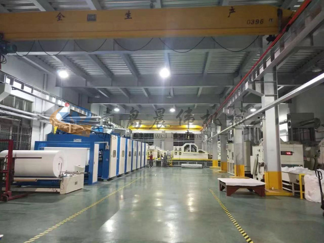 開包機(jī)-開松機(jī)-振動給棉機(jī)-梳理機(jī)-鋪網(wǎng)機(jī)-針刺機(jī)-切邊成卷機(jī)