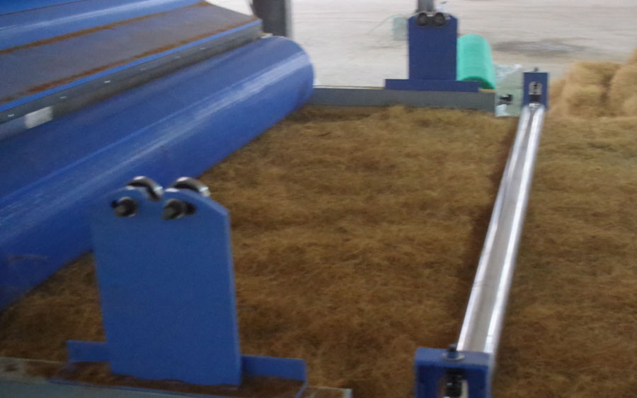 本生產(chǎn)線是利用椰棕纖維和膠水通過高溫?zé)犸L(fēng)穿透粘合定型,通過壓板機(jī)多層壓實(shí)而成,椰棕墊是床上用品、服裝家具、沙發(fā)高級(jí)的芯墊材料。