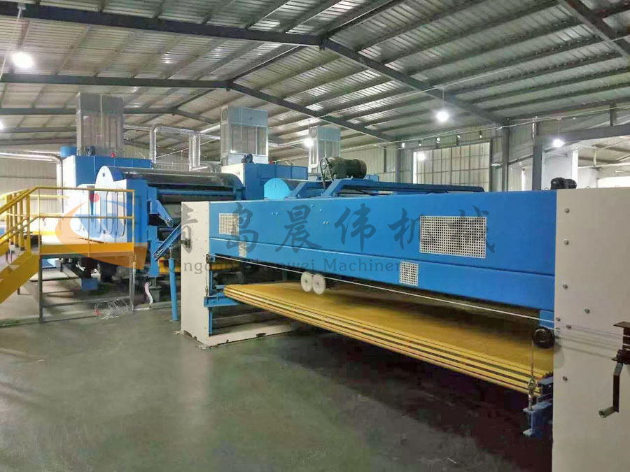 5. CWPW-鋪網機:用于將梳理纖網通過移動小車交叉折疊為所需幅寬和定量的多層纖網,以供后道工序使用。鋪網輥采用特殊結構,加裝壓網輥和導流板,不飄網不起皺,五只大功率電機精確控制各部件的運動,電動輸出簾高度調節(jié)裝置